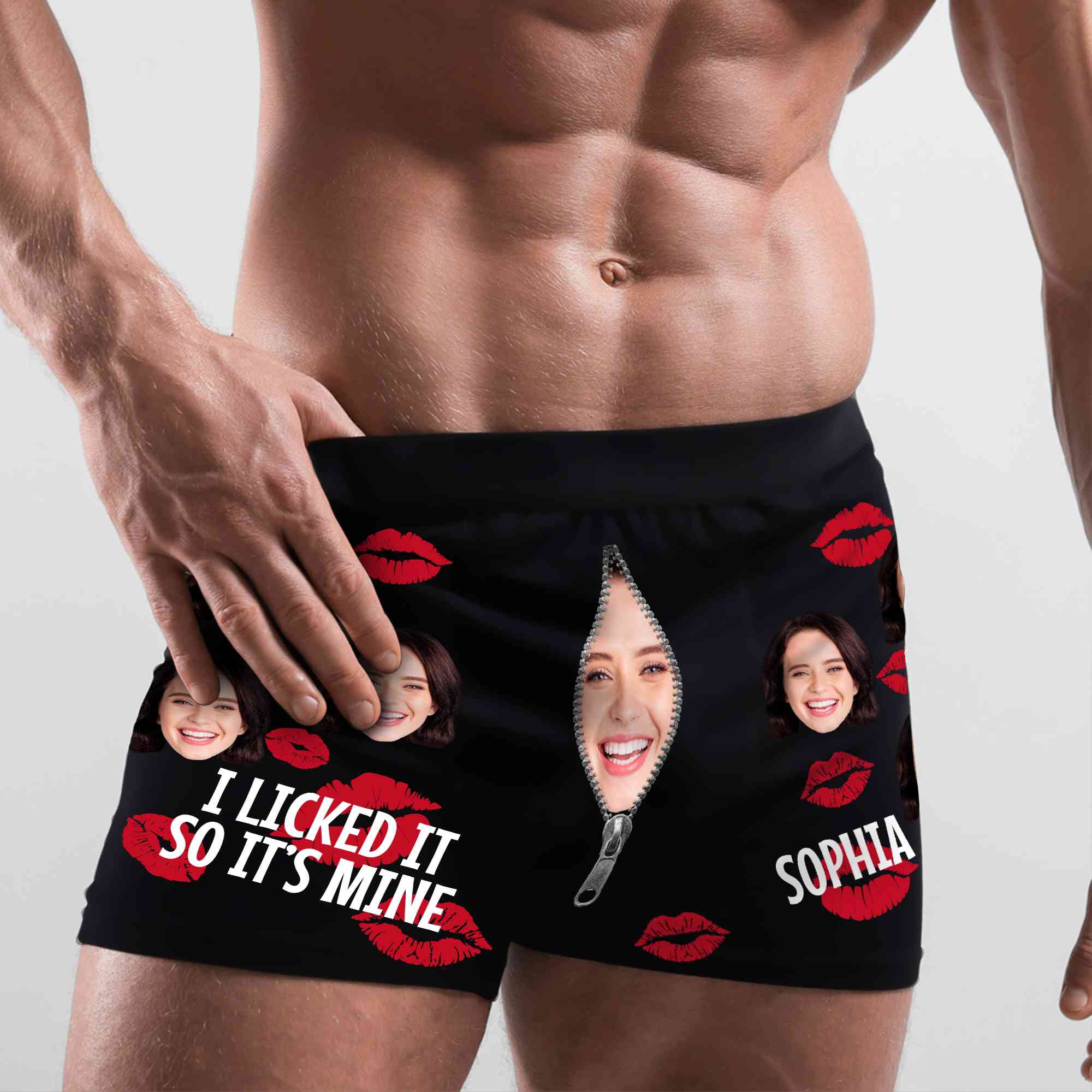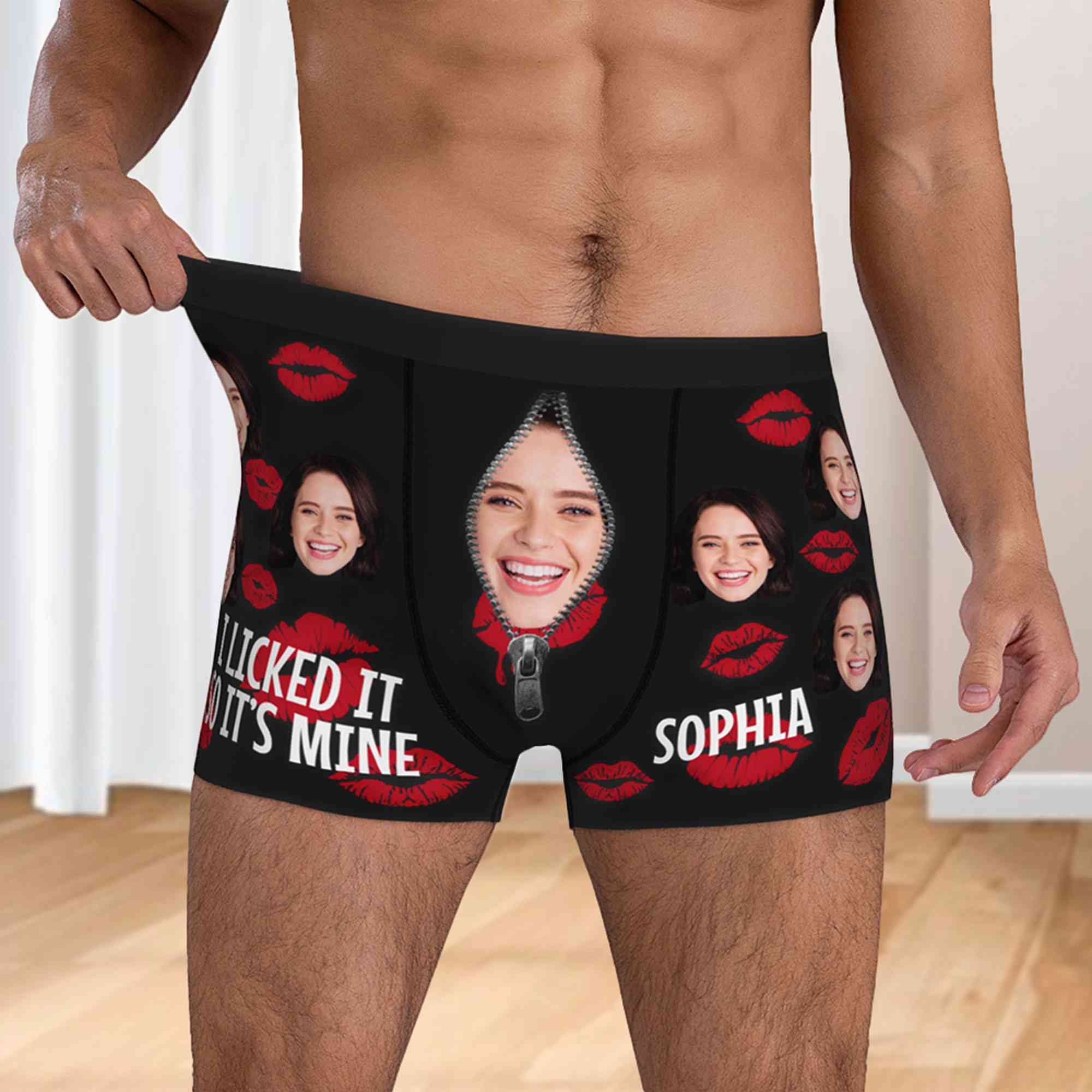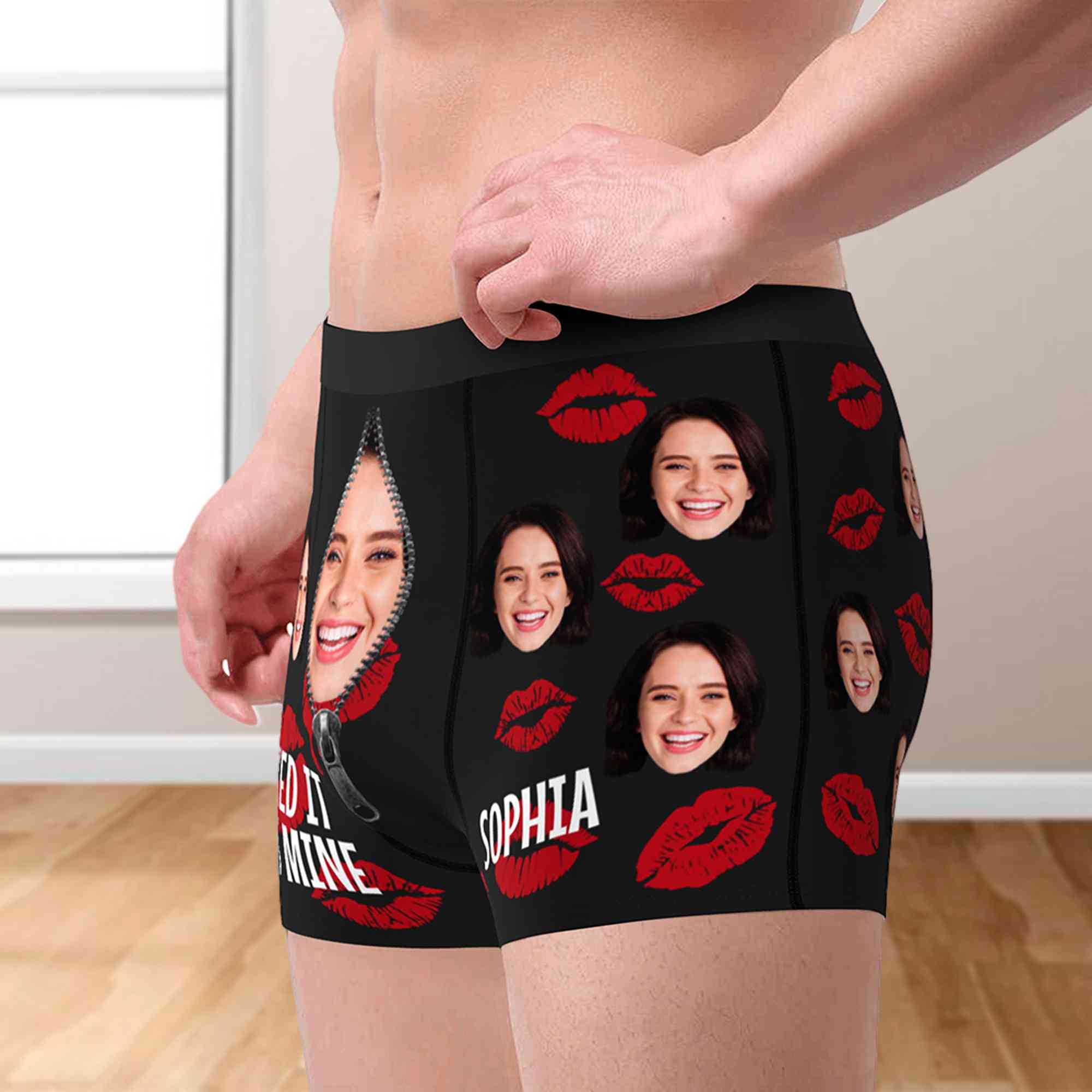 Custom Name & Face Photo Lips & Zipper Design Funny Boxer Briefs |
